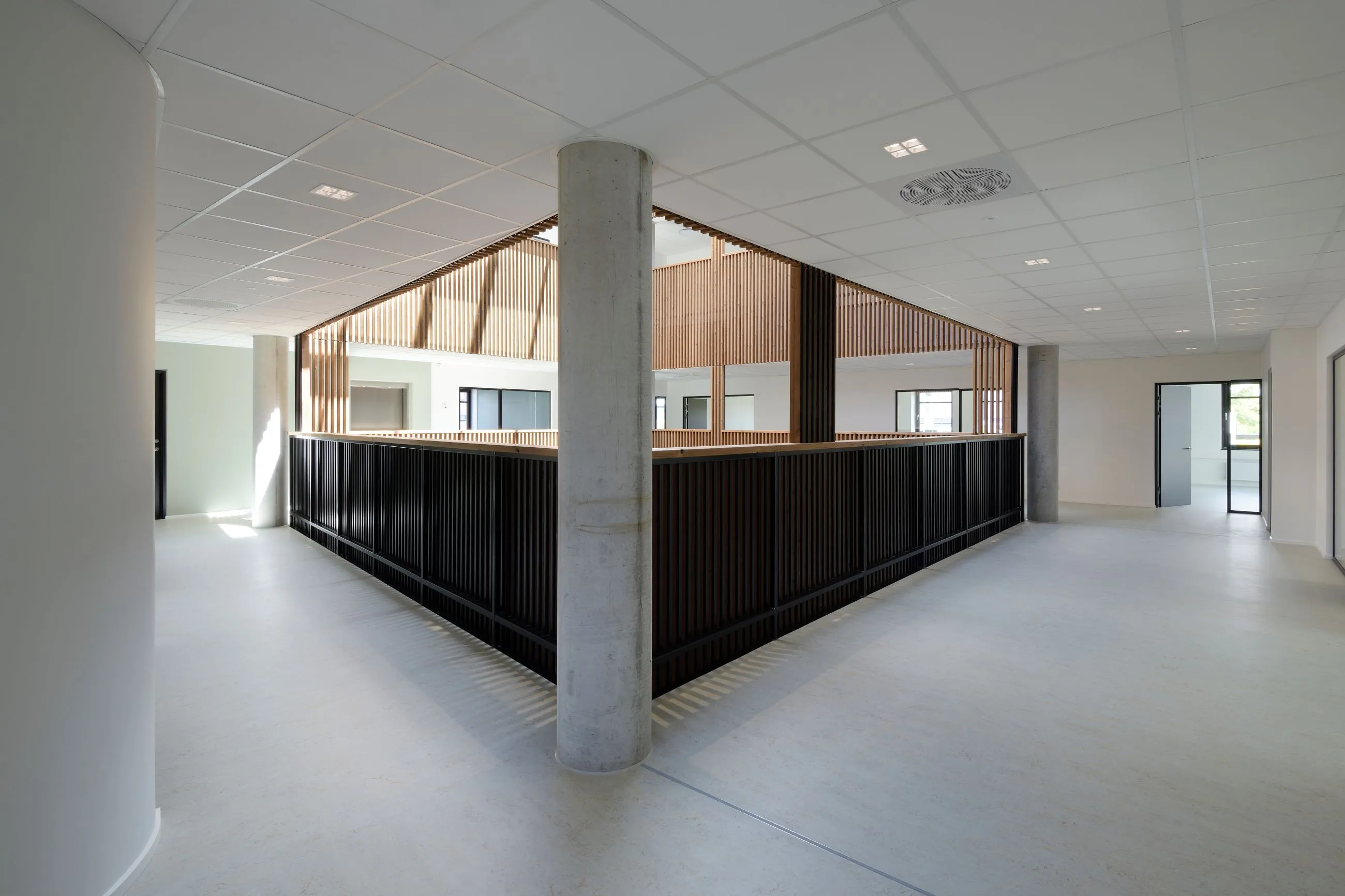 Zelfs in gebouwen met hoge veiligheidsnormen hoef je niet af te zien van de natuurlijke expressie van hout.