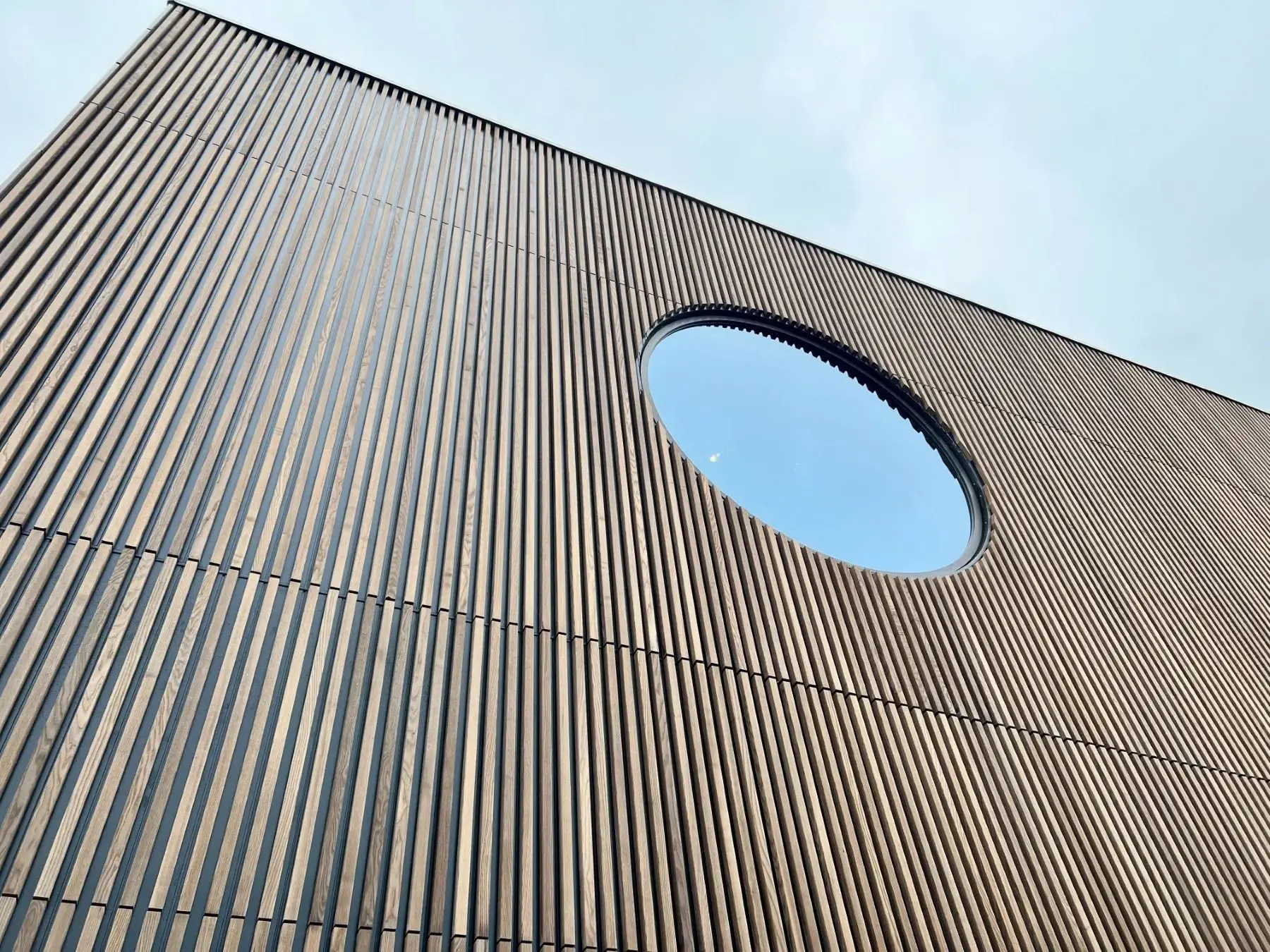 Wat hout en aluminium echter gemeen hebben, zijn de vele mogelijkheden om de houtsoort te kiezen en te anodiseren. En niet in de laatste plaats de ontwerpvrijheid van de systemen, die het mogelijk maakt om een gevel precies naar wens te ontwerpen en zonder beperkingen op lamellengtes, CC-afstanden, profielverdelingen en lamellenvoegen.