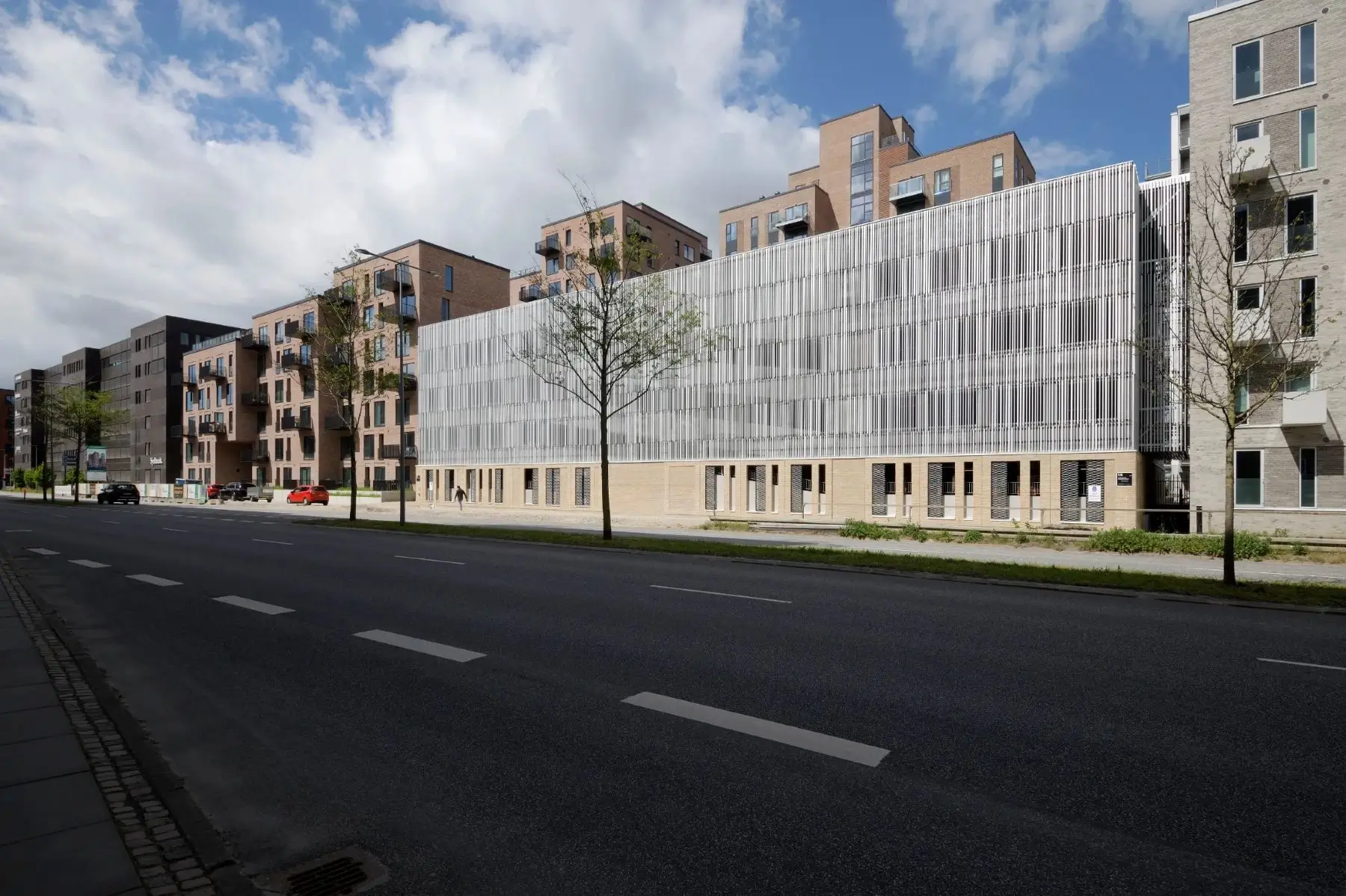 Maak een uitstapje naar Aalborg en zie hoe vier verschillende parkeergarages met aluminium gevels zich ontwikkelen.